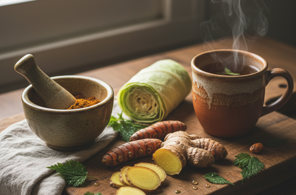 Bóle reumatyczne domowe sposoby skupiają się na imbirze i kurkumie. Gingerole w imbirze hamują prostaglandyny odpowiedzialne za ból, a kurkumina w kurkumie działa antyoksydacyjnie, chroniąc chrząstki stawowe. Badania kliniczne (np. z „Journal of Medicinal Food”) potwierdzają redukcję bólu o 30-50% po 8 tygodniach regularnego spożycia. Przygotuj herbatę: 1 łyżeczka startego imbiru + ½ łyżeczki kurkumy na szklankę wrzątku, pij 2 razy dziennie z odrobiną pieprzu dla lepszego wchłaniania.