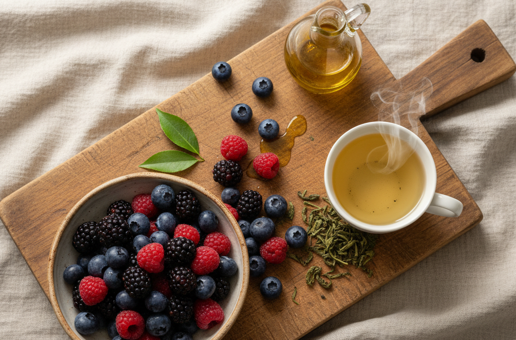 | Jagody i zielona herbata | Bieganie lub joga | Zwiększona energia i lepsza ochrona przed wolnymi rodnikami |