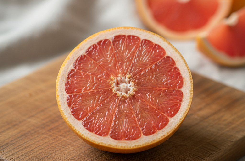 - Silne działanie przeciwutleniające – Grejpfrut zawiera flawonoidy, które pomagają chronić komórki przed uszkodzeniem spowodowanym przez wolne rodniki.