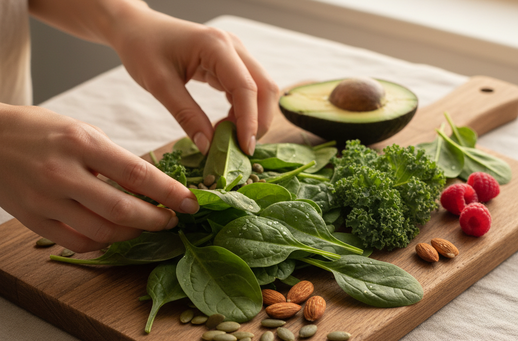 | Żelazo | 27 mg | Czerwone mięso, szpinak |