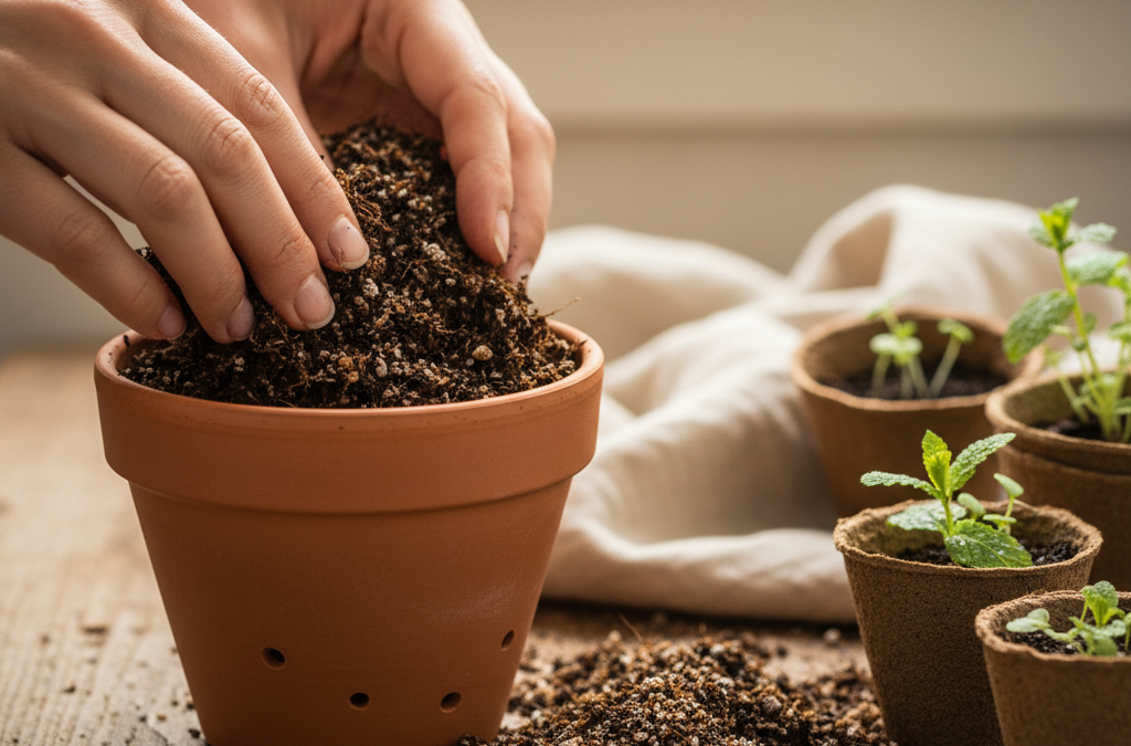 2. Wybór ziemi: Zdecyduj, jaka ziemia do ziół w doniczkach będzie najlepsza.