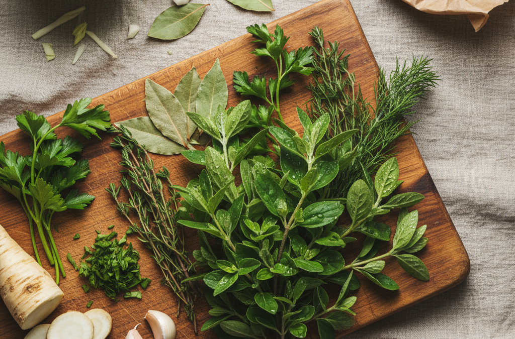 - Na początku gotowania – dodaj twarde zioła, takie jak liść laurowy czy tymianek. Ich smak będzie miał czas na uwolnienie się w wodzie.