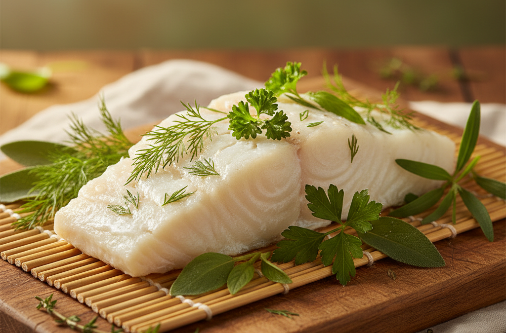 6. Podawanie: Po ugotowaniu rybę można podać z dodatkowymi ziołami lub cytryną.
