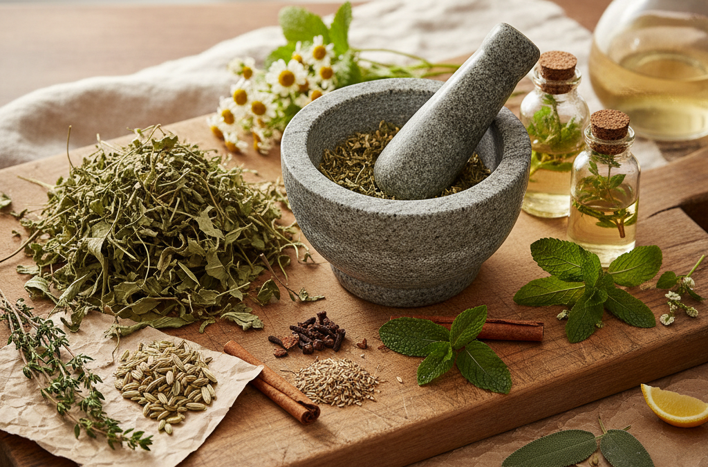 – Mięta: Działa odświeżająco, może wspomagać układ pokarmowy.