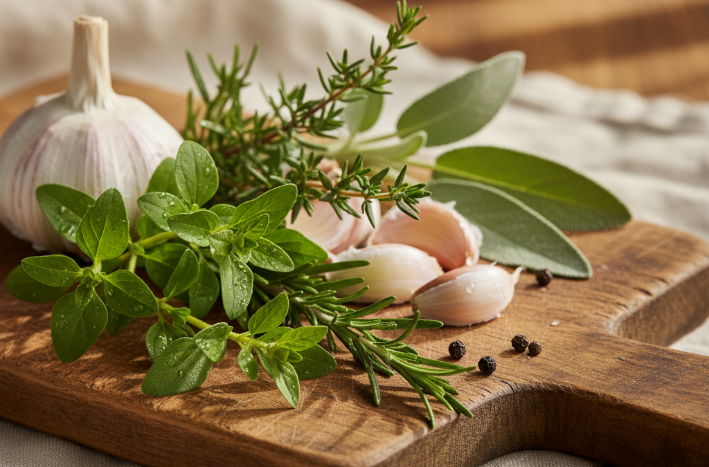 1. Majeranek – nadaje potrawom delikatny, ziołowy smak. Często używany w daniach duszonych i pieczonych.