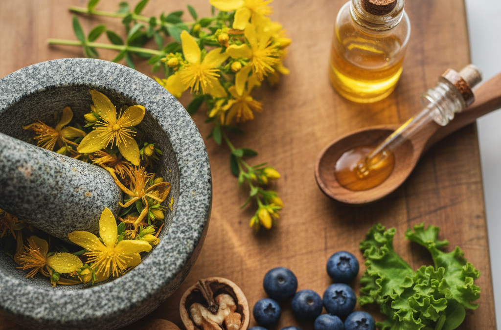 Dziurawiec na bielactwo (Hypericum perforatum) zawiera hiperycynę, która stymuluje melanocyty. Badania z Phytotherapy Research (2022) pokazują poprawę pigmentacji po olejku dziurawcowym stosowanym 3 mies. (10 min ekspozycja na słońce dziennie). Uwaga: fotouczulenie!