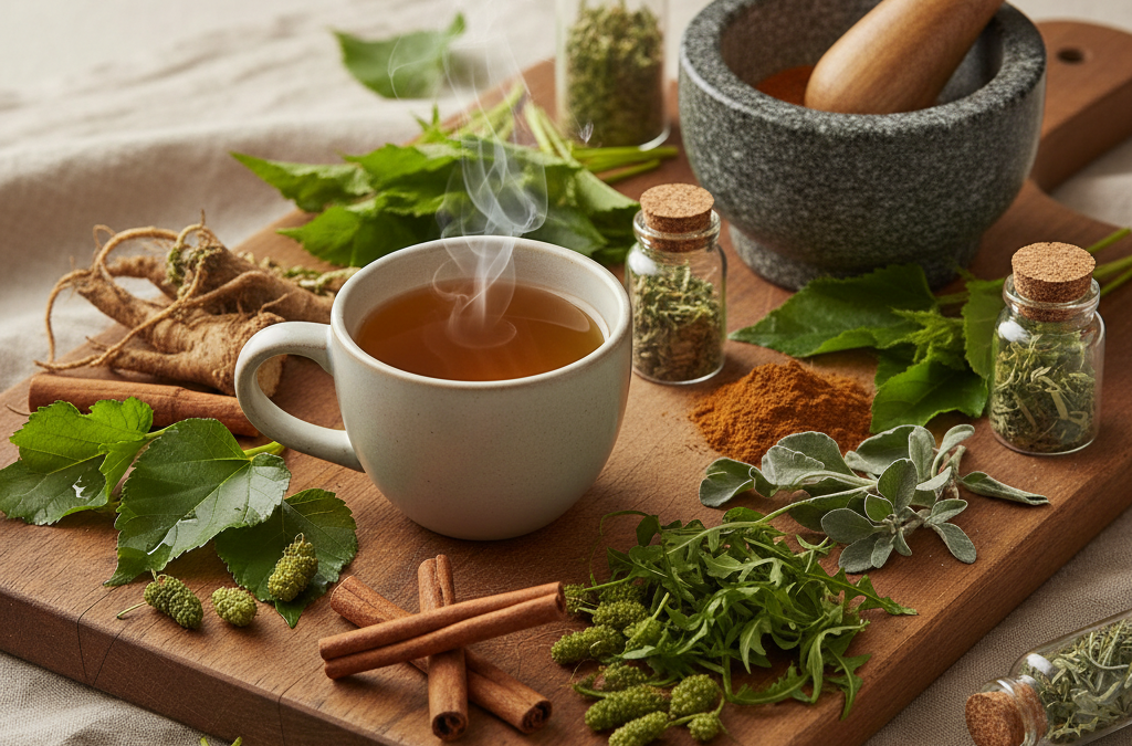 Liście morwy białej zawierają substancje, które mogą spowolnić wchłanianie cukrów w jelitach. Można je stosować w formie herbaty lub jako suplement.