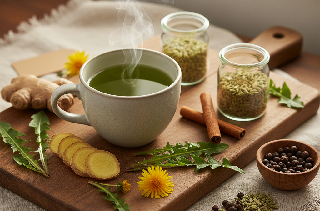 Imbir wspiera trawienie i ma działanie termogeniczne. Przyspiesza metabolizm, co może pomóc w redukcji tkanki tłuszczowej. Można go stosować w postaci herbaty lub jako przyprawę do potraw.