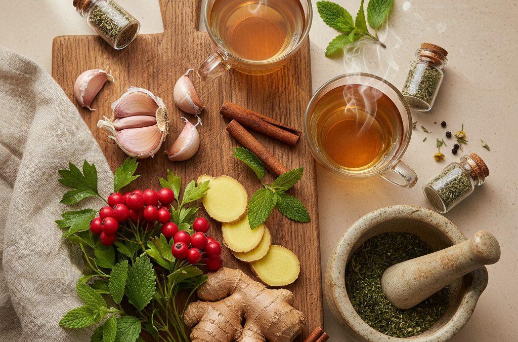 Imbir ma działanie przeciwzapalne i może wspierać krążenie. Może również pomóc w regulacji ciśnienia krwi. Warto dodawać go do potraw lub pić w postaci herbaty.