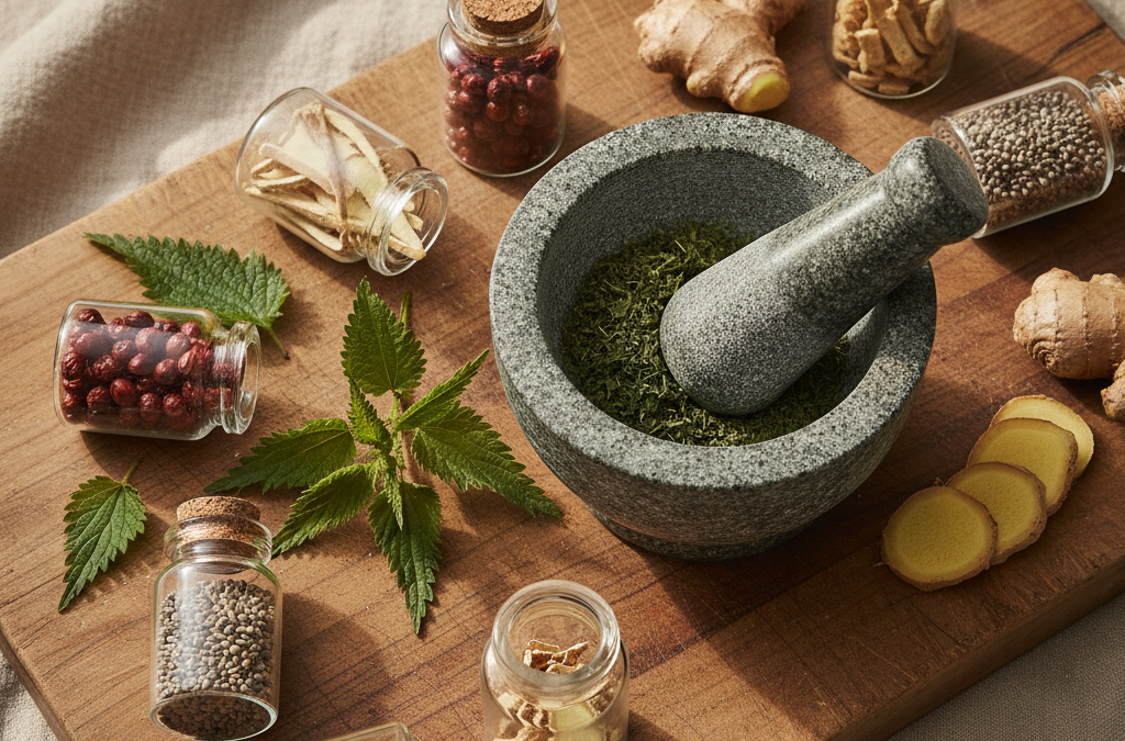 Pokrzywa zwyczajna jest jednym z najczęściej stosowanych ziół w terapii prostaty. Zawiera fitosterole, które mogą pomóc w regulacji poziomu hormonów. Ekstrakty z pokrzywy mogą zmniejszać stan zapalny i poprawiać przepływ moczu.