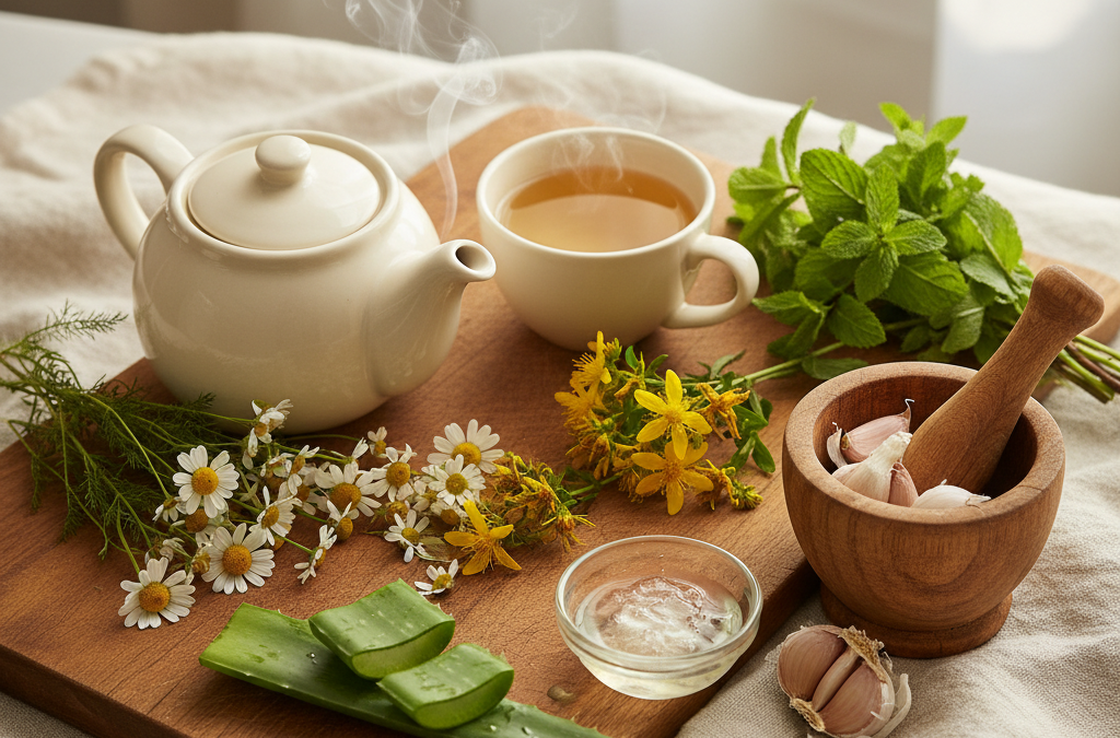 – Herbaty ziołowe: Zaparzaj zioła w gorącej wodzie. Po ostygnięciu pij regularnie.