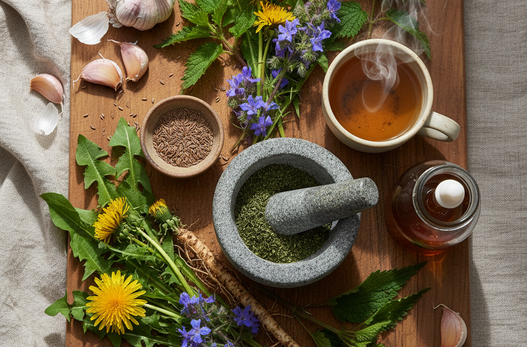 Mniszek lekarski, znany także jako dmuchawiec, ma korzystny wpływ na wątrobę. Wspiera usuwanie toksyn z organizmu. Może także pomóc w obniżeniu cholesterolu. Można go stosować w postaci herbaty lub wyciągu.