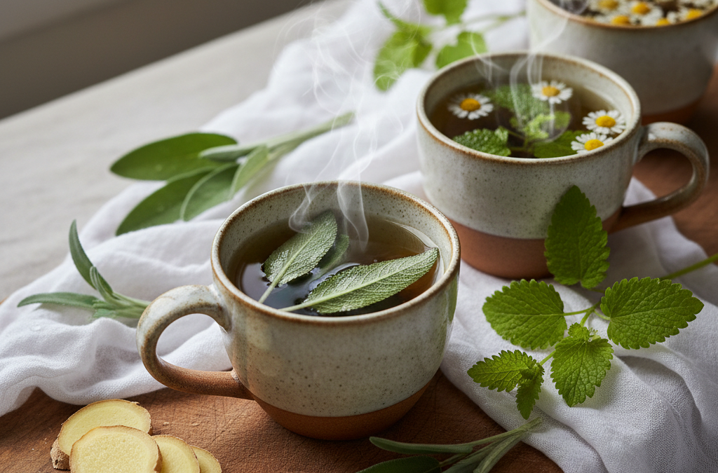 Szałwia jest znana z właściwości chłodzących. Może pomóc w regulacji potliwości. Zawiera substancje działające podobnie do estrogenów. Można ją pić w formie herbaty.