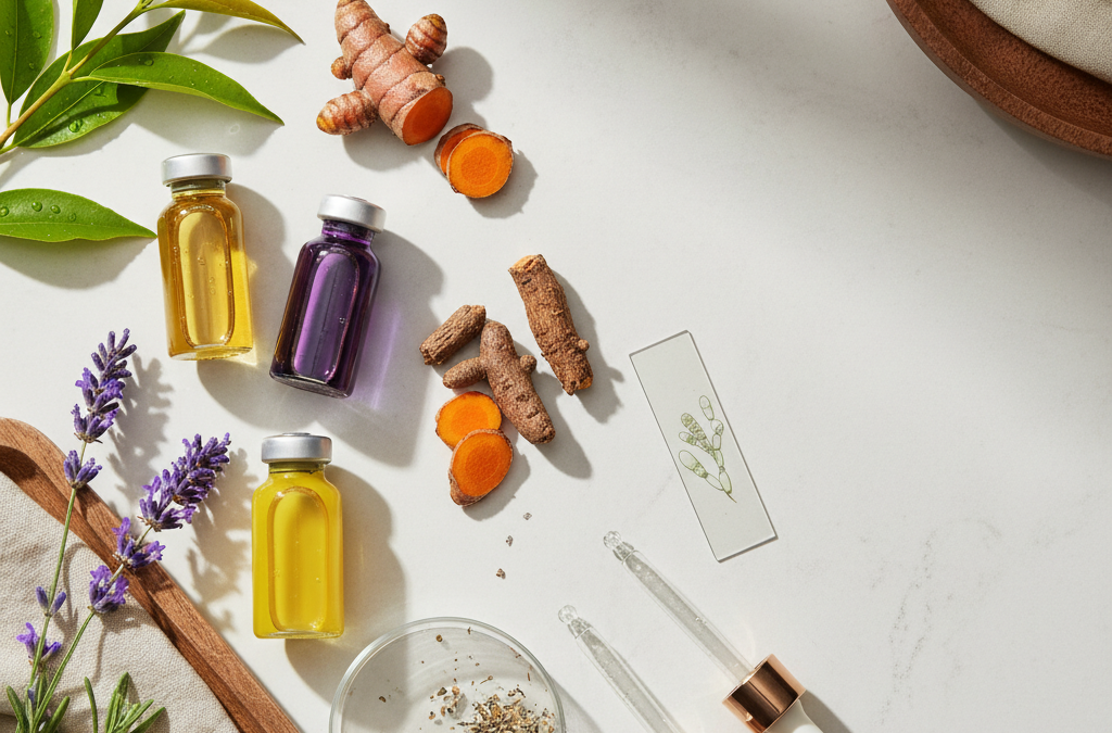 - Niektóre rośliny, jak olejek z drzewa herbacianego, lawenda, lukrecja, kurkuma i niecierpek, wykazują działanie antybakteryjne, przeciwzapalne lub zmniejszające produkcję sebum.