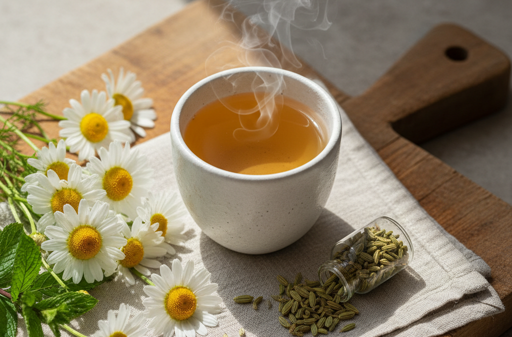 | Rumianek | Łagodzi stany zapalne i skurcze jelit | Unikać u dzieci z alergią na rośliny z rodziny astrowatych |