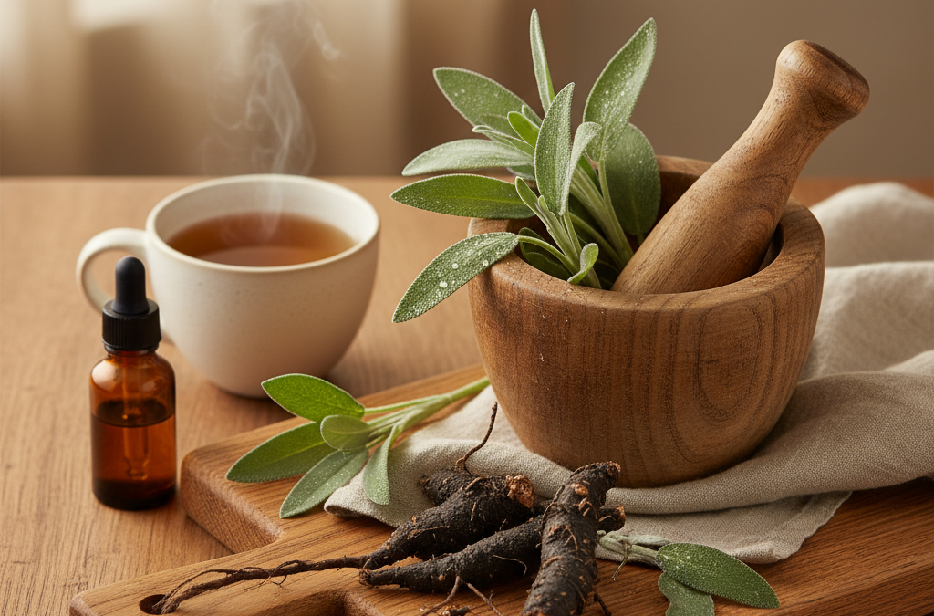 | Szałwia | Redukuje uderzenia gorąca i poprawia sen | Rzadko: mdłości lub reakcje alergiczne |