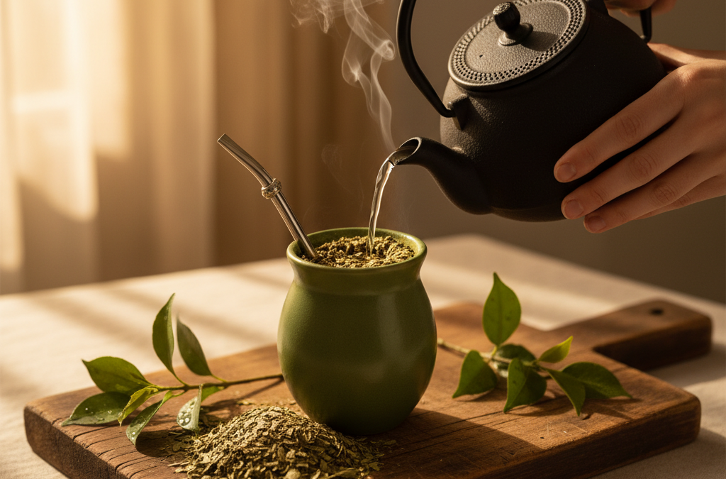 - Picie yerba mate rano jako zamiennik kawy dla stałego poziomu energii.