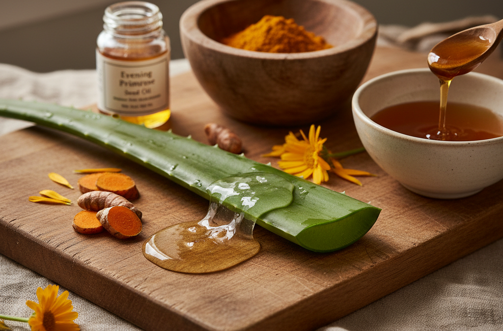- Kurkuma: Działa przeciwzapalnie, zmniejszając czerwone blizny; wymieszaj z miodem dla lepszych efektów.