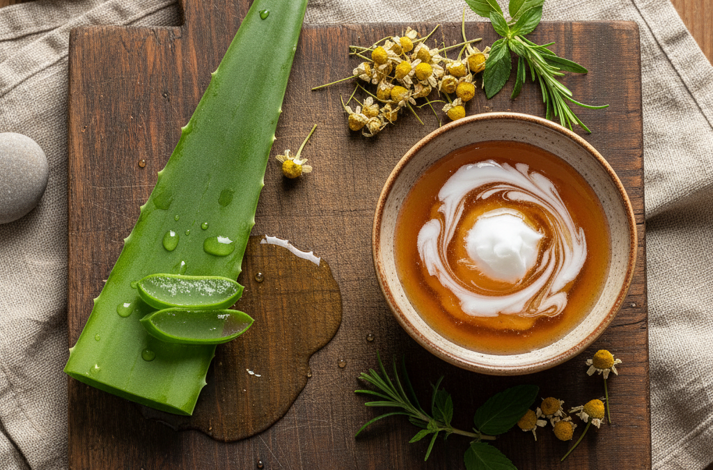 - Aloes – idealny do nawilżenia i łagodzenia podrażnień, działa antybakteryjnie.