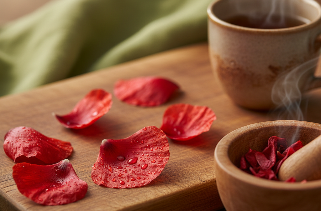 - Przygotuj herbatę: Zalej łyżeczkę suszonych płatków gorącą wodą i parz 10 minut dla efektu relaksującego.