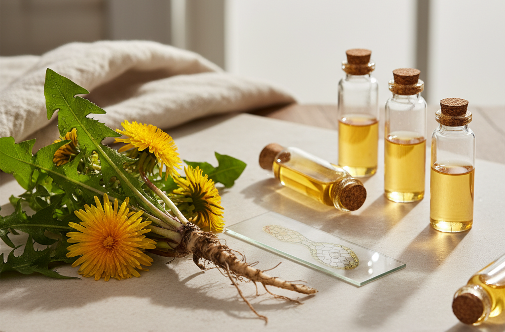 - Bioaktywne składniki mniszka, takie jak flawonoidy, polisacharydy i taraksasterol, indukują apoptozę komórek rakowych i blokują ich cykl.