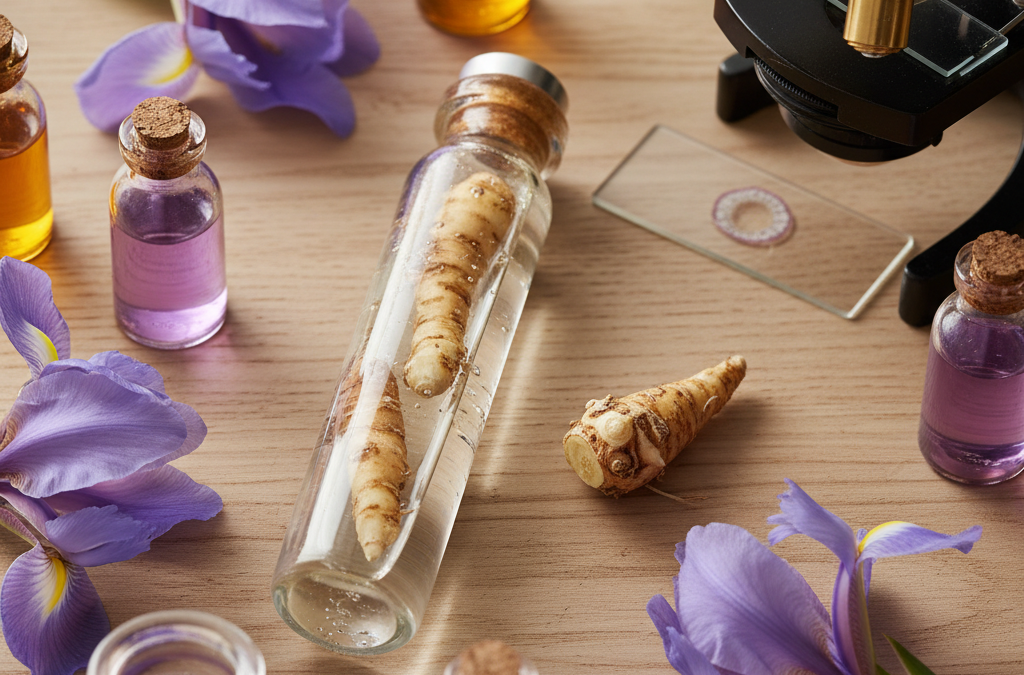 - Związki fenolowe, w tym flawonoidy i izoflawony jak irigenina i irydyna.