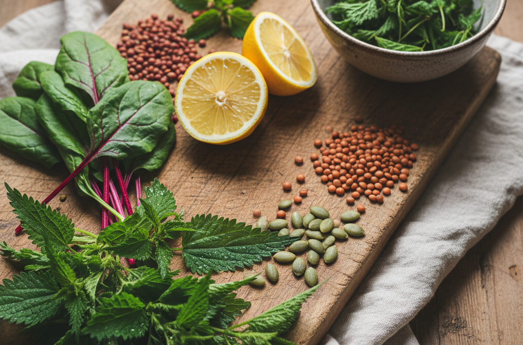 - Niskie spożycie żywności bogatej w żelazo.